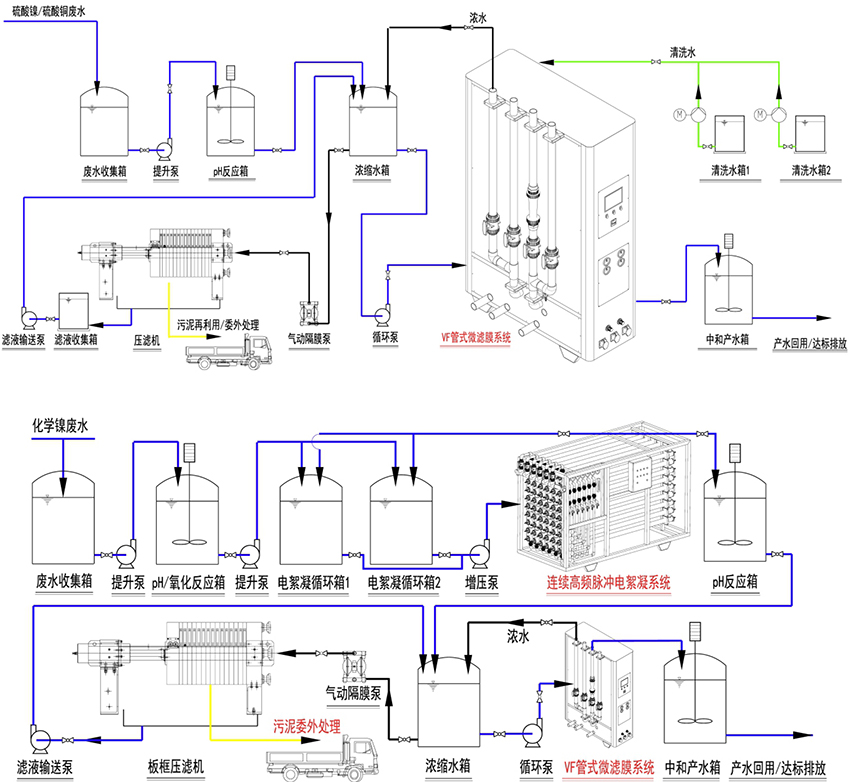 备注:含铜废水处理工艺与含镍废水处理工艺相类似